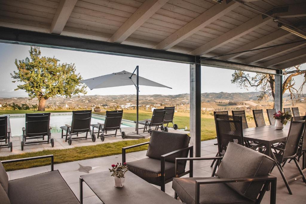Byen har 11.000 indbyggere og alle de butikker, barer og restauranter du kan ønske dig. Nogle af regionens førende kød- og ostebutikker ligger i byen. Områdets hovedby, Asti, er cirka 25 minutters kørsel væk. Ejendommen har udsigt hele vejen rundt med alperne mod vest.